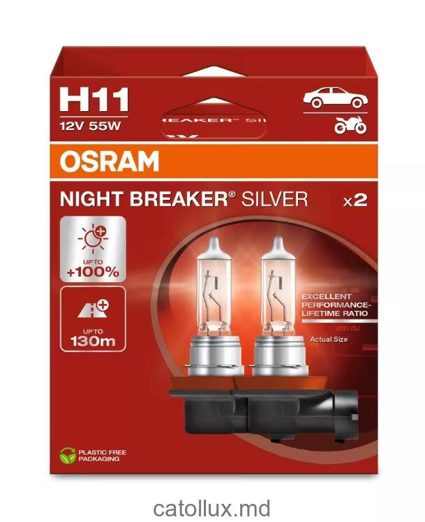Галогенная лампа повышенной яркости OSRAM с оптимальным сроком службы NIGHT BREAKER SILVER – яркая галогенная лампа OSRAM с оптимальным сроком службы. По сравнению с требованиями стандарта, она обеспечивает до 100% больше яркости, образуемый световой луч до 130 м длиннее. Это позволяет распознавать препятствия, опасности и дорожные знаки раньше и реагировать на них быстрее. Кроме того, NIGHT BREAKER SILVER отличаются отличным соотношением цены и качества и современным дизайном с серебристым колпачком (H4/H7/H11). Это идеальный выбор для водителей, придающих наибольшее значение эксплуатационным характеристикам и сроку службы автомобильной лампы.